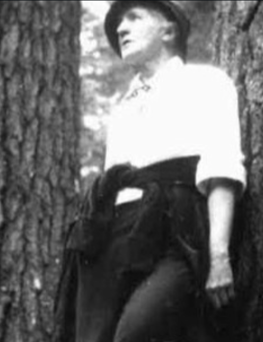 The Sivertson family lived and worked near the Andrews. On one occasion when she took a group hiking she was observed, “’Now everybody lay down’. She lay spread eagle on the ground to rest and everyone had to do the same. “We can hike all day like this.” she said. She wore denim hiking clothes and had her pince nez hanging from her neck.” Howard Sivertson said in an oral interview.